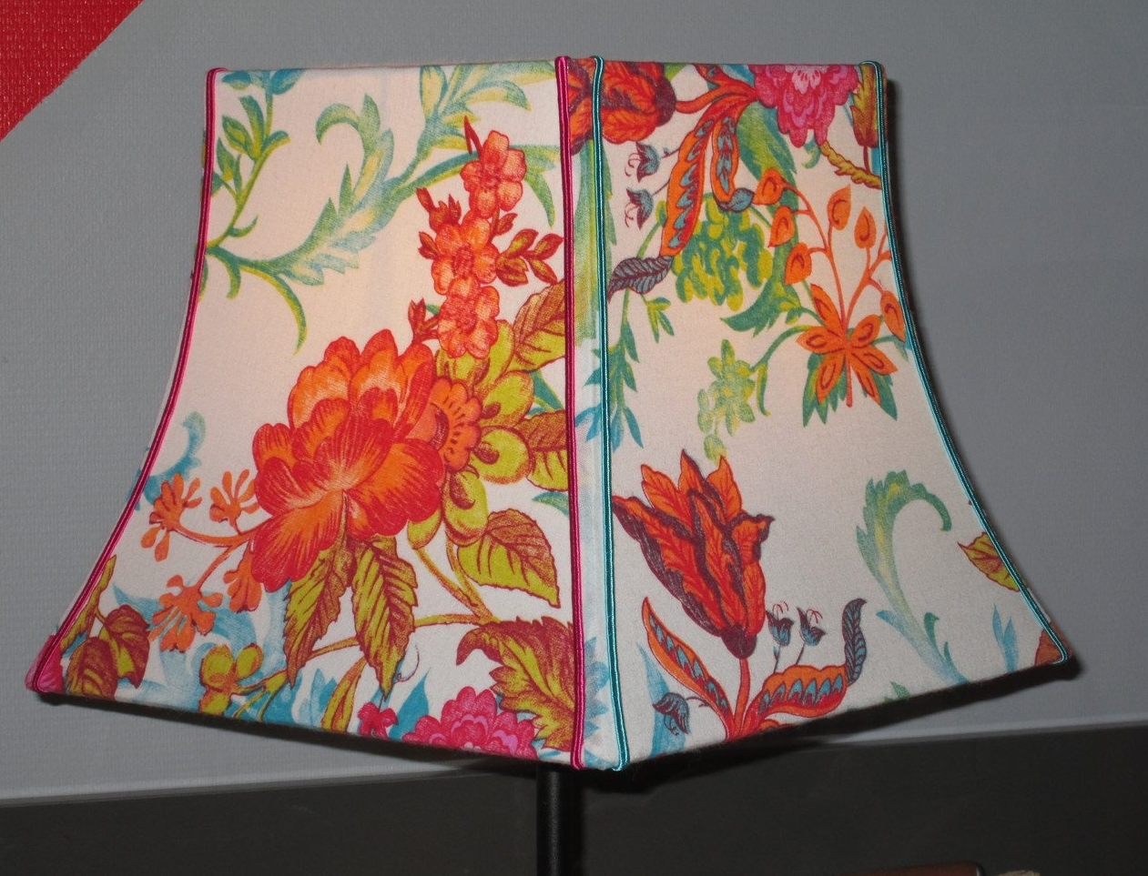 Abat-jour cheminée, coton changé pour une soie sauvage orange